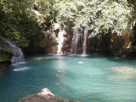 필리핀 세부에 위치한 '카와산 폭포 (바로가기)'는 숲을 지나는 하이킹 코스 끝에 위치해 있습니다. 이 폭포는 맑고 푸른 물이 특징이며, 폭포 아래에서 수영을 즐길 수 있습니다.