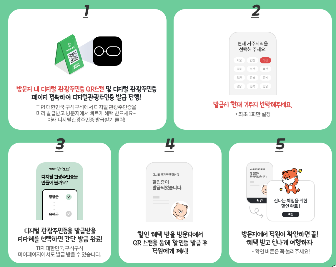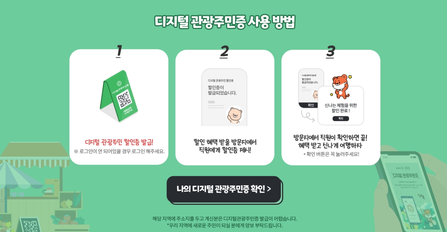 - 발급 완료 : 모든 과정이 완료되면, 디지털 관광 주민증이 발급됩니다. 이제 지역 관광을 즐길 준비가 완료되었습니다!