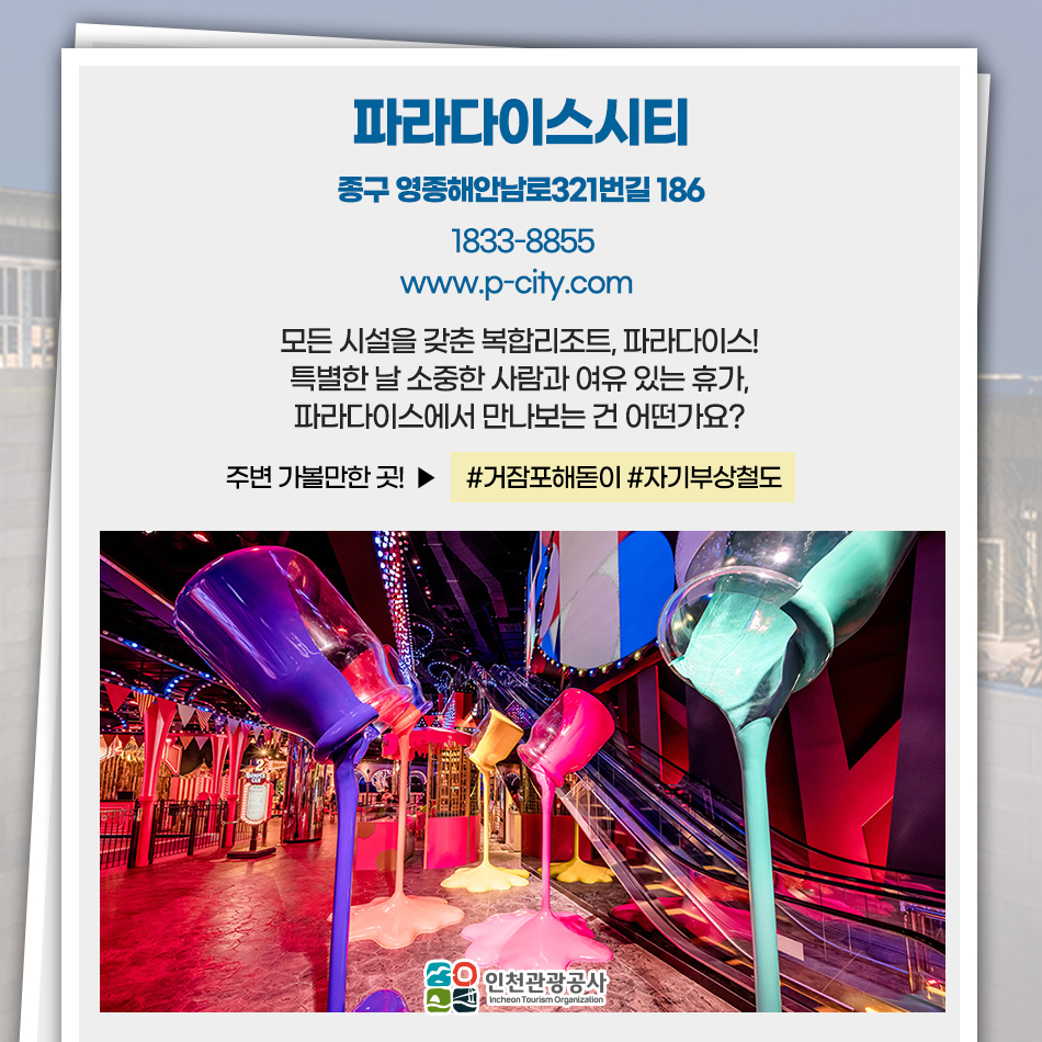 이 밖에도 영종도 주변에 백운산(용궁사), 파라다이스시티, 인천대교개념관 등 추천드릴 장소는 많은데, 지면상 아래 사진으로 대체하겠습니다.