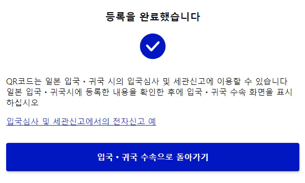 - "등록" 버튼을 클릭하여 입국·귀국 수속 등록을 완료합니다.
