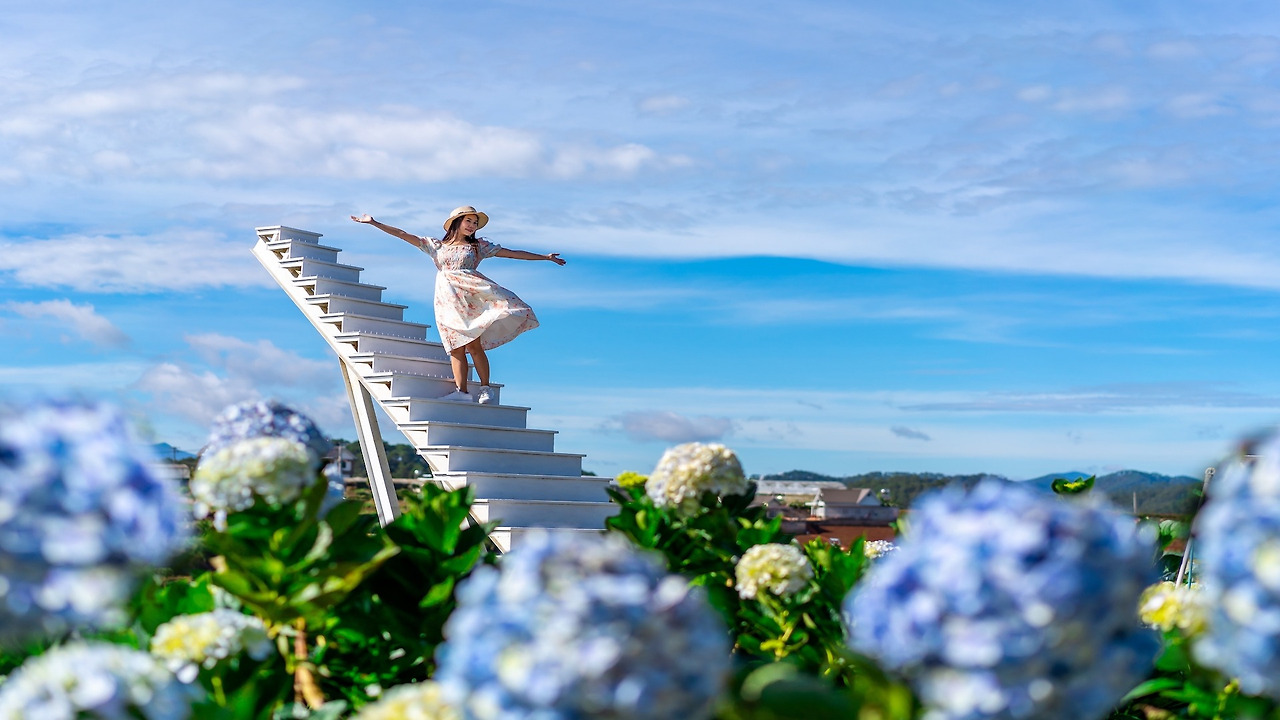 과감하고 독특한 디자인의 이 계단은 달랏에서 인스타그램 핫스팟으로 유명해요. 멋진 사진을 찍기 좋은 포토존으로, 하늘을 향해 올라가는 느낌이 정말 짜릿해요!