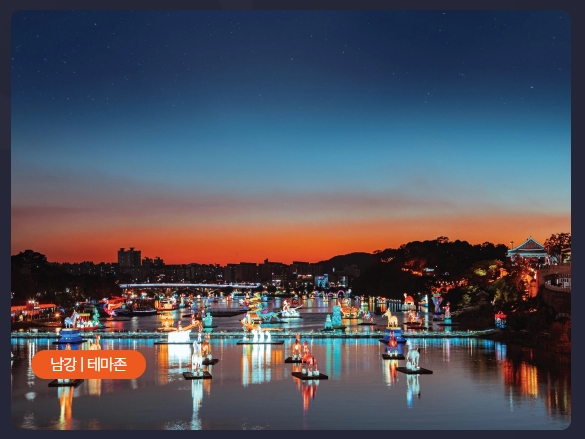 남강을 배경으로 한 유등과 불꽃놀이를 감상하며 멋진 사진을 남길 수 있는 포토존이 많습니다. 인생 사진을 남기고 싶다면 꼭 방문해 보세요.