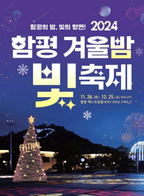 [4] okithekey.com - 2024 함평 겨울밤 빛축제 - 지금 핫한 여행 정보 (https://okithekey.com/entry/2024-%ED%95%A8%ED%8F%89-%EA%B2%A8%EC%9A%B8%EB%B0%A4-%EB%B9%9B%EC%B6%95%EC%A0%9C)