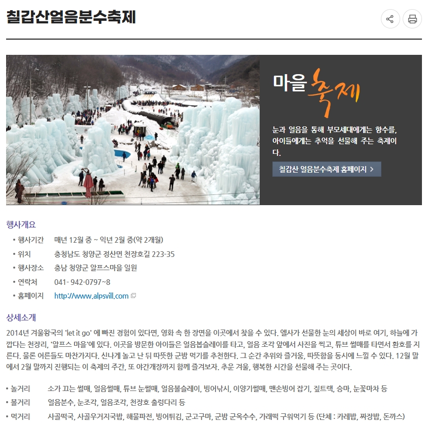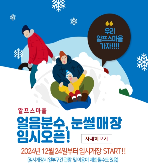 청양 알프스마을 눈썰매장 추천 칠갑산얼음분수축제
